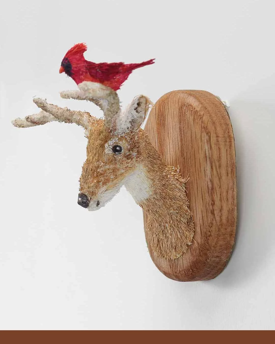 As Melinda creates her paper sculptures, a story often emerges. She felt that this cardinal and young buck would be best of friends. The cardinal loves to catch a ride on this young buck's antlers as they explore the forest for nearby treats. They become "Best Friends Forever" as the go on many adventures, trading their latest stories.