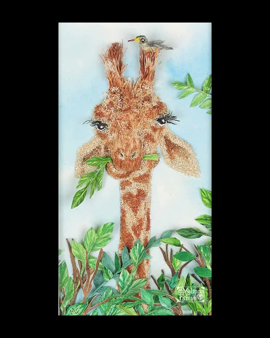 Paper Sculpture of an adorable giraffe munching on some tasty leaves.