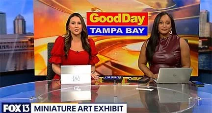 Melinda’s “Please Don’t Bug Me!” won first place in Sculpture and Scrimshaw at the 50th Annual International Miniature Art Exhibition at Creative Pinellas in Largo, FL. Fox13 in Tampa Bay, FL covered the Exhibition and Melinda’s art can be seen at the 26 second mark. Her other pieces can be seen at the 2:18 second mark.