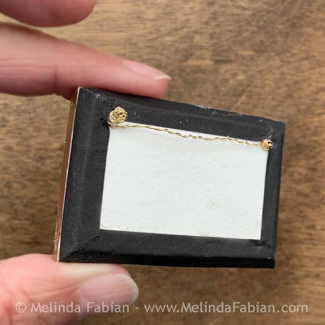 This tiny peacock feather is actually hand made out of paper. The feather was painted in watercolor and gouache with gold colored accents added to the feather. This intricate peacock feather is hand cut out of acid-free and archival paper giving it a three-dimensional look. The feather is framed inside a miniature gold colored picture frame. There isn’t any glass on the front of the frame. The back of the frame is wired and ready to hang up on the wall when your art arrives or the framed art can sit nicely on a small easel.
